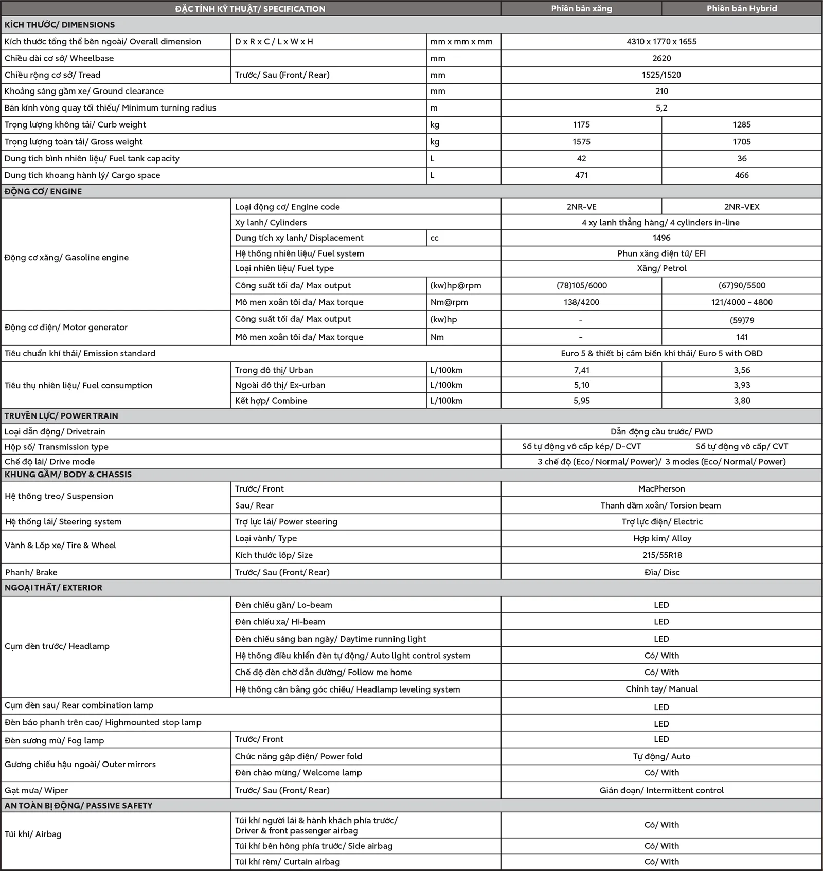 Yaris Cross bản Xăng